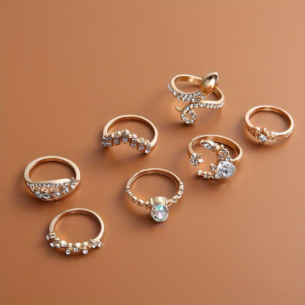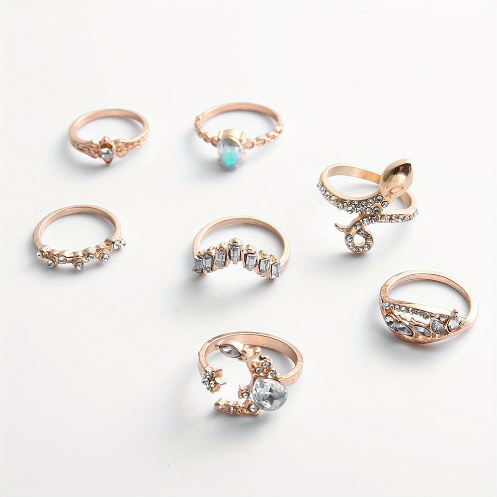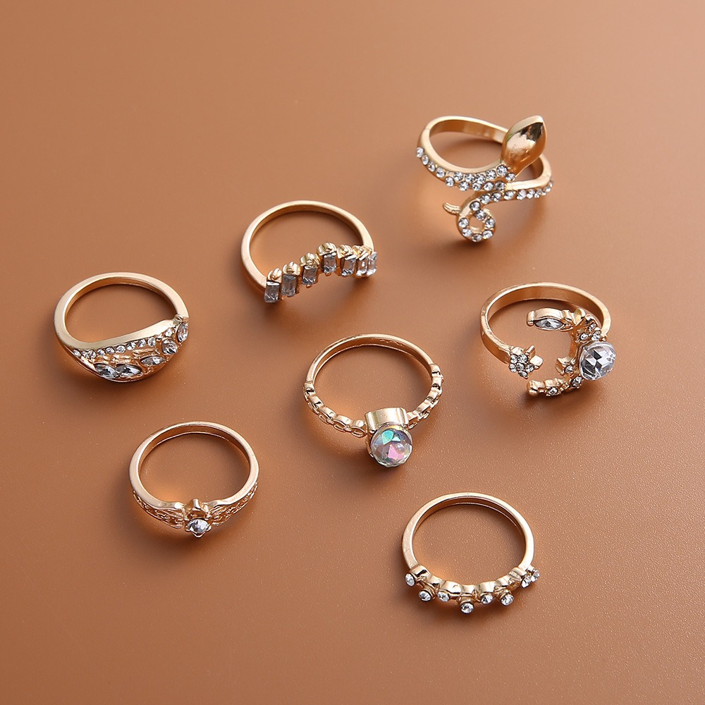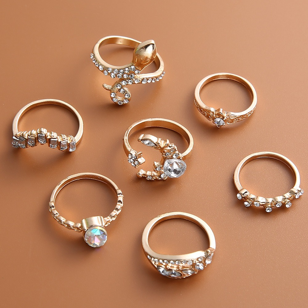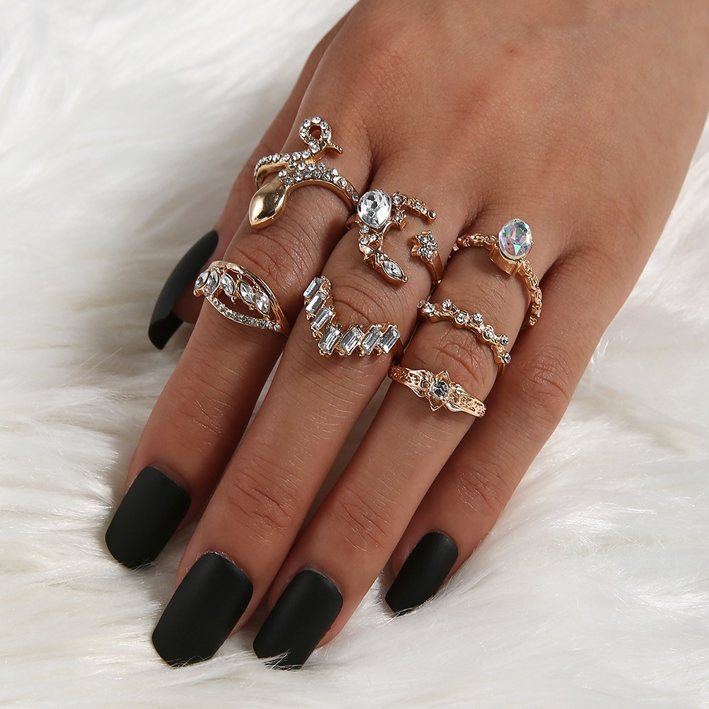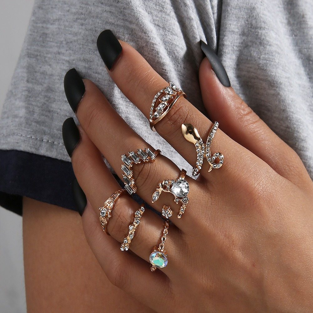 Vintage pattern snake diamond ring 7-piece set diamond set ring jewelry