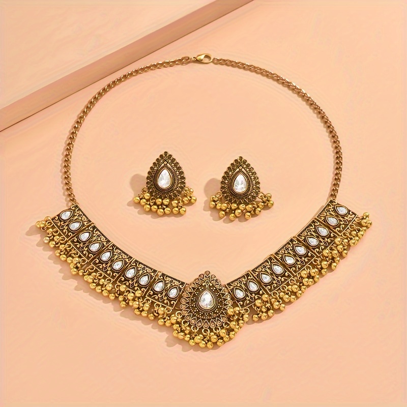 Vintage Peacock Jewelry Set, Sparkling Rhinestones - Ladies Bold Necklace and Earrings Combination, Suitable for Parties and Gifts