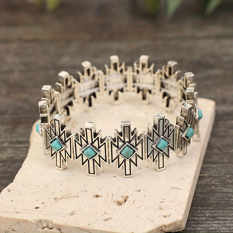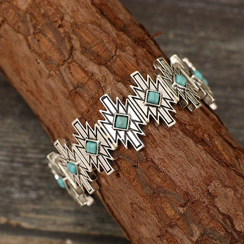 Vintage personalized stitching lightning square turquoise bracelet, unique bohemian bracelet, women's accessories