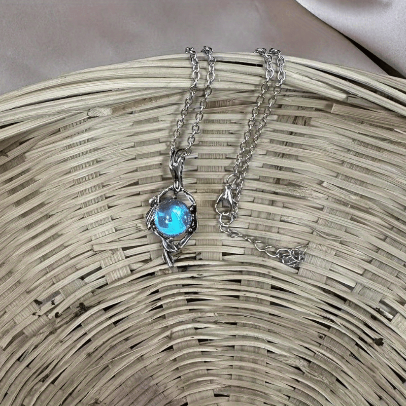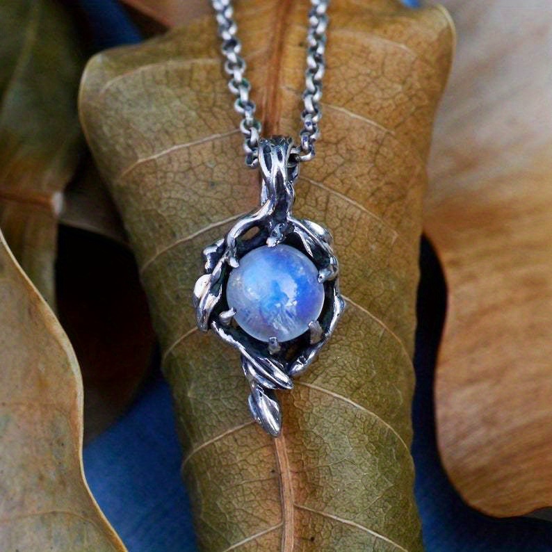 Vintage Rainbow Moonstone Flame Necklace Women's Y2K Accessories
