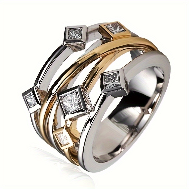 Vintage ring, multi-layer + interwoven design, paved with sparkling zircon, suitable for men and women, daily matching party accessories