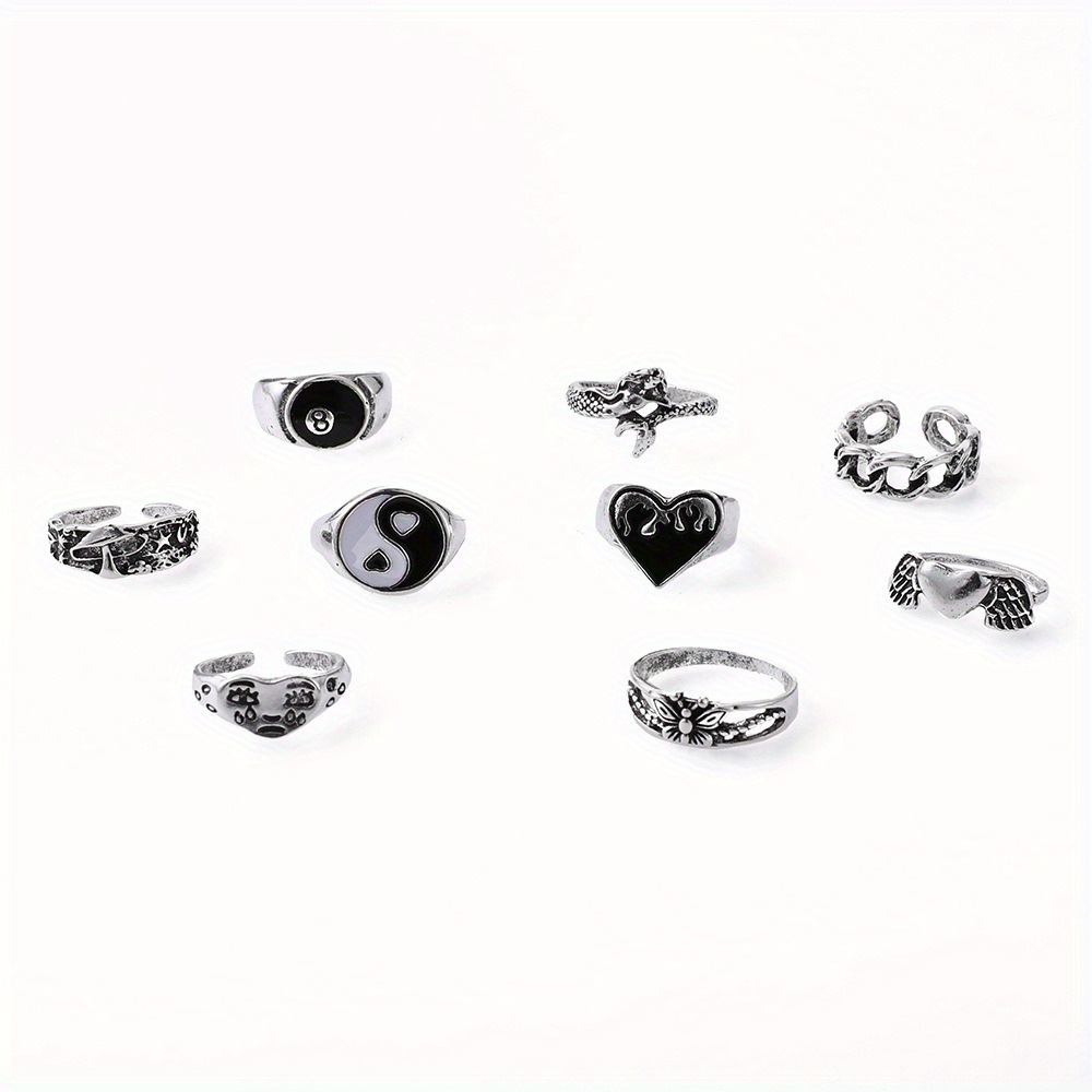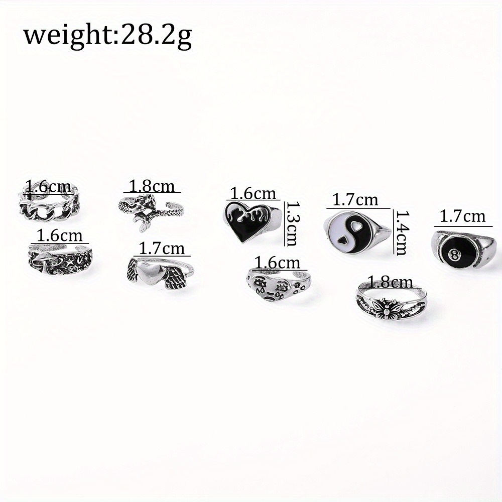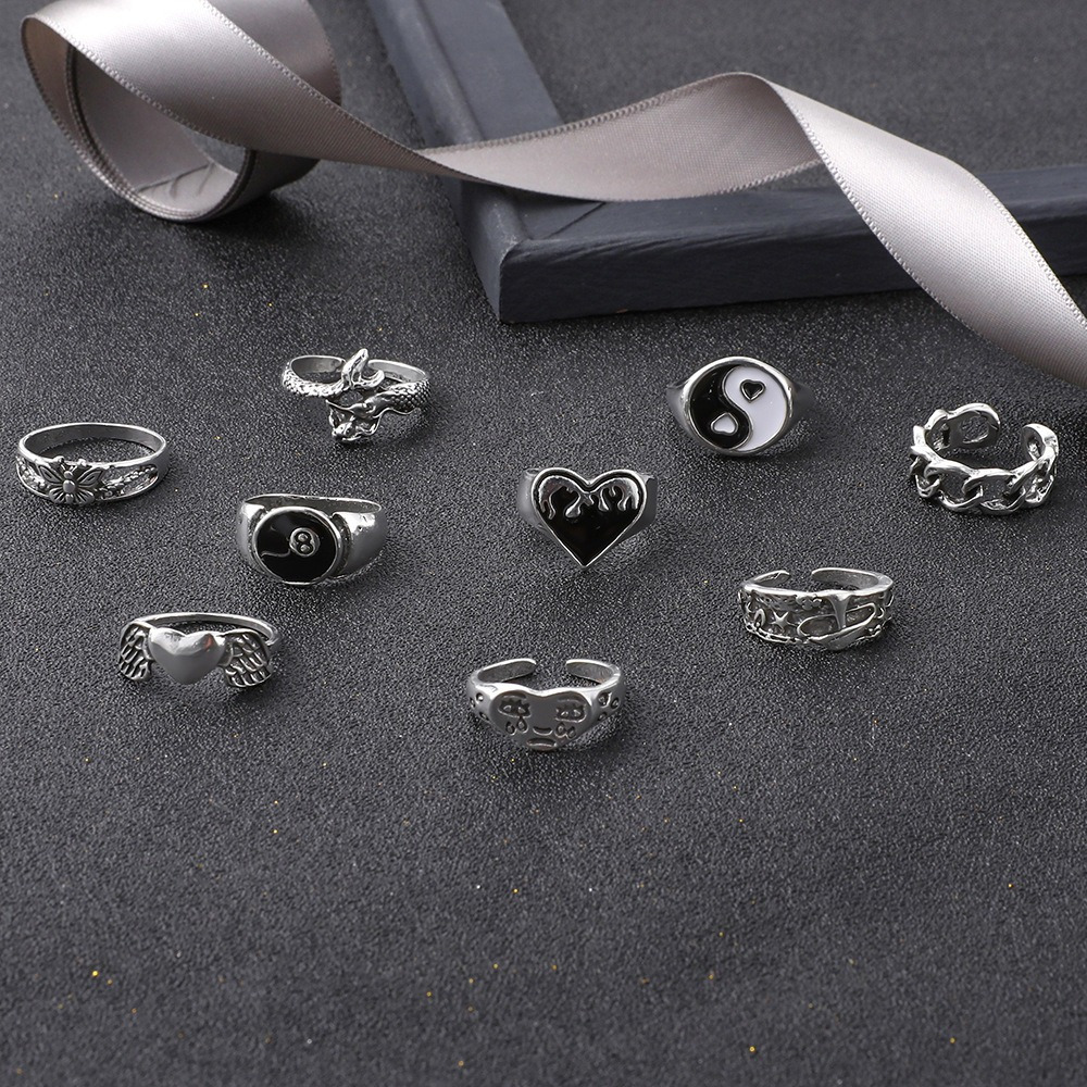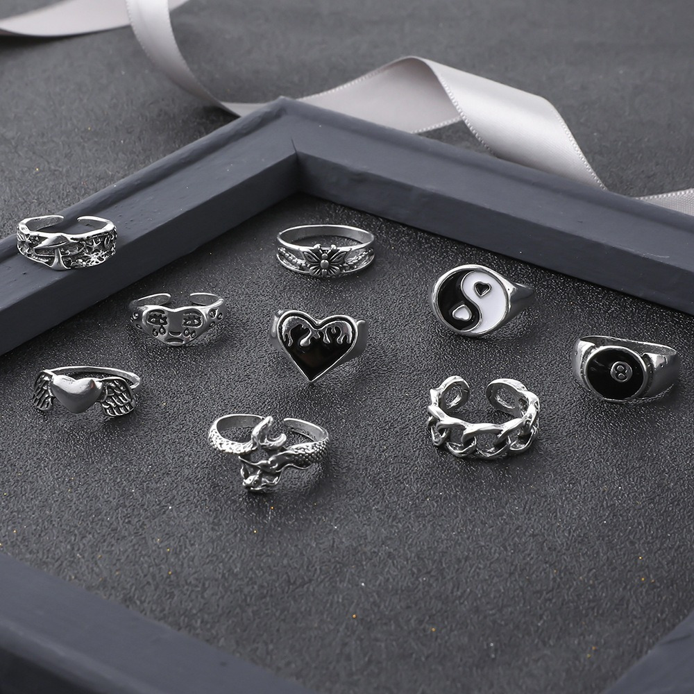 Vintage Ring Oil Drop Love Digital 8 Wings Butterfly Chain Snake 9 Piece Set Ring