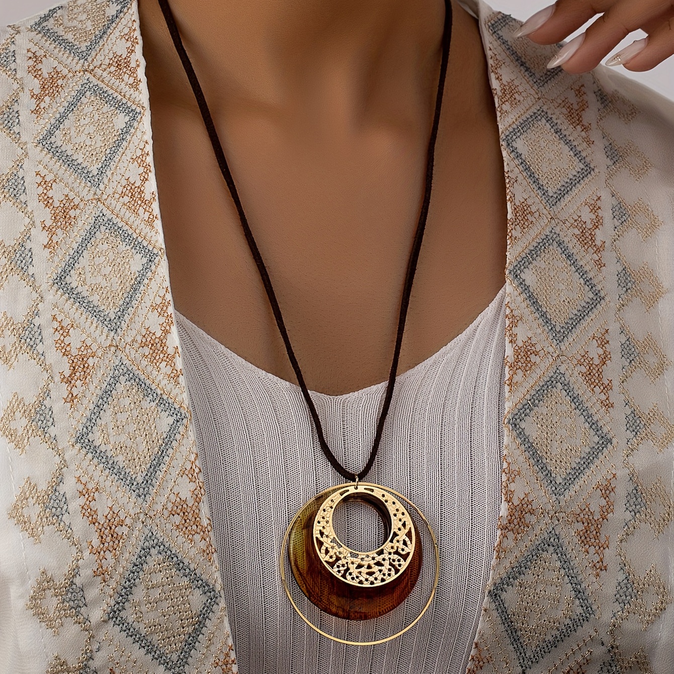 Vintage Round Pendant Adjustable Length Necklace