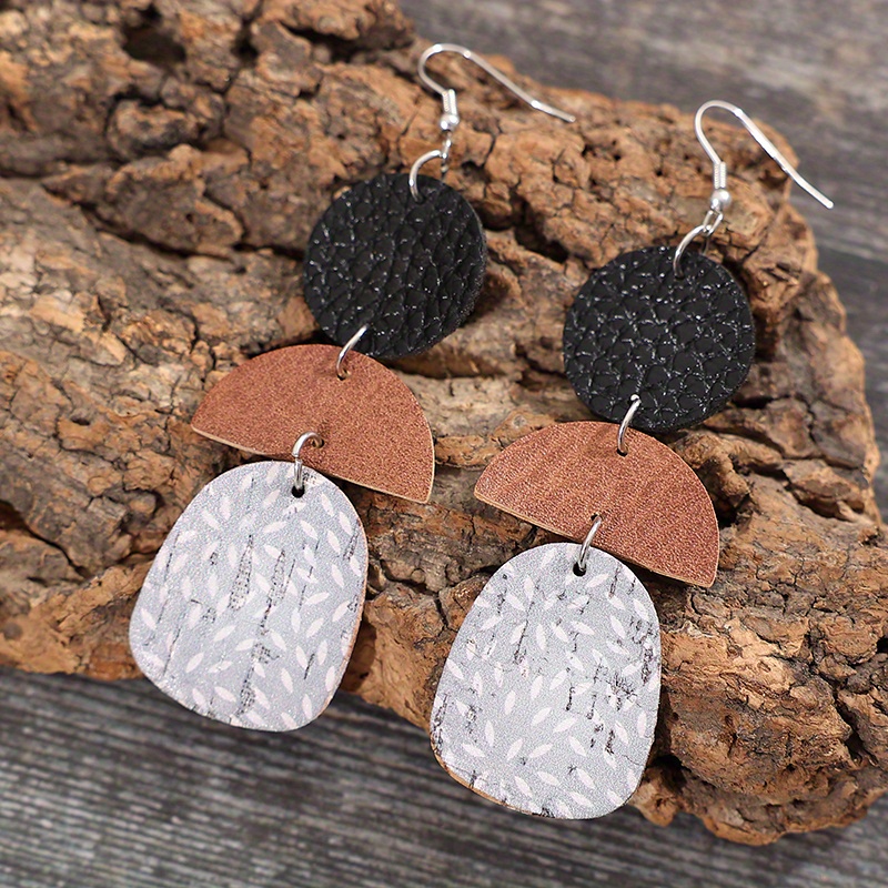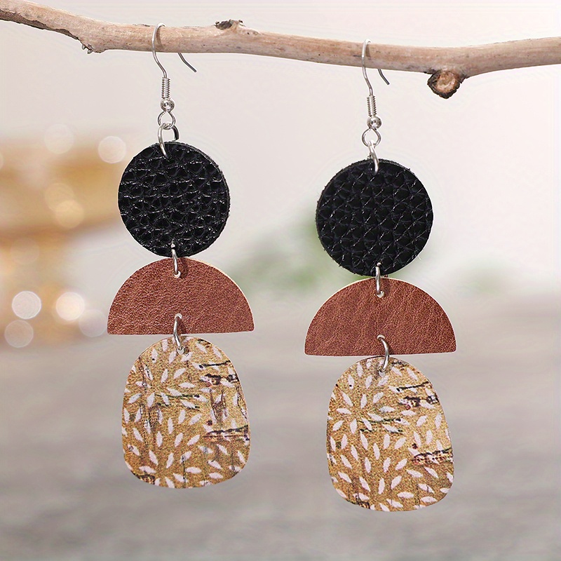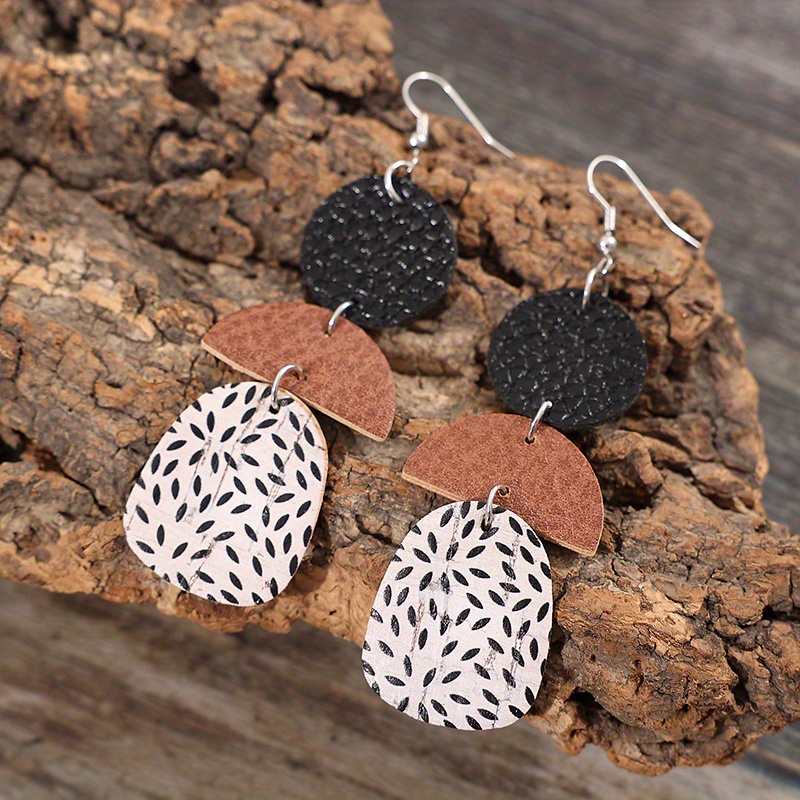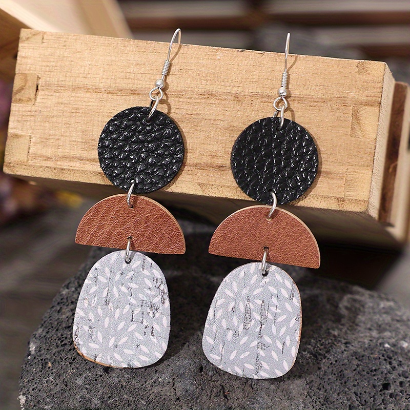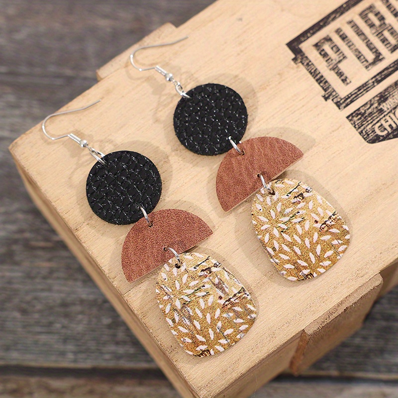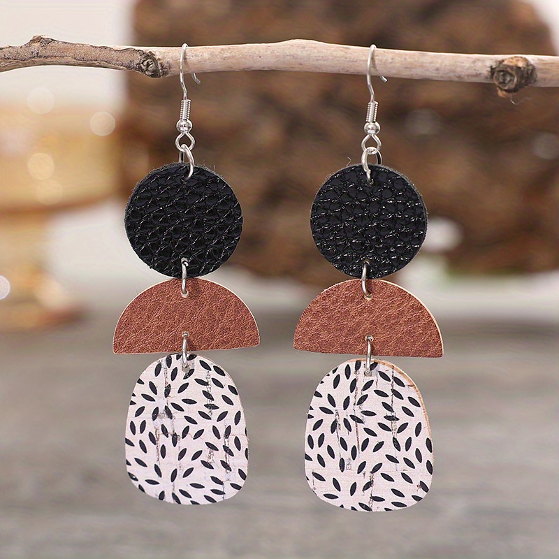 Vintage Round Semicircular Stitching Polka Polka Dot Drop Earrings Vintage Elegant Style PU Leather Jewelry Fashion Women's Gifts Autumn and Winter Earrings