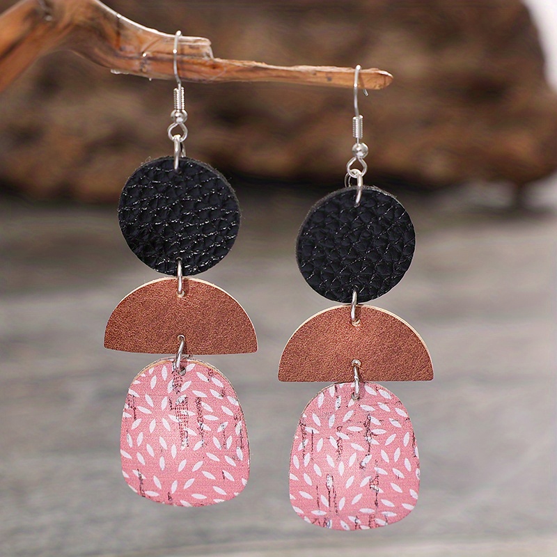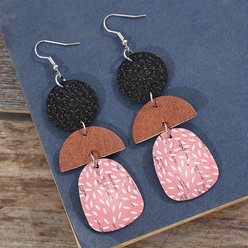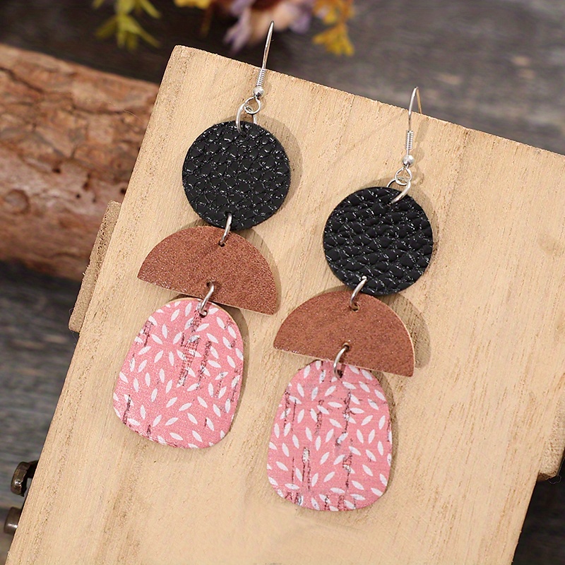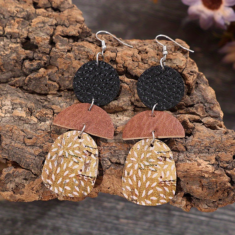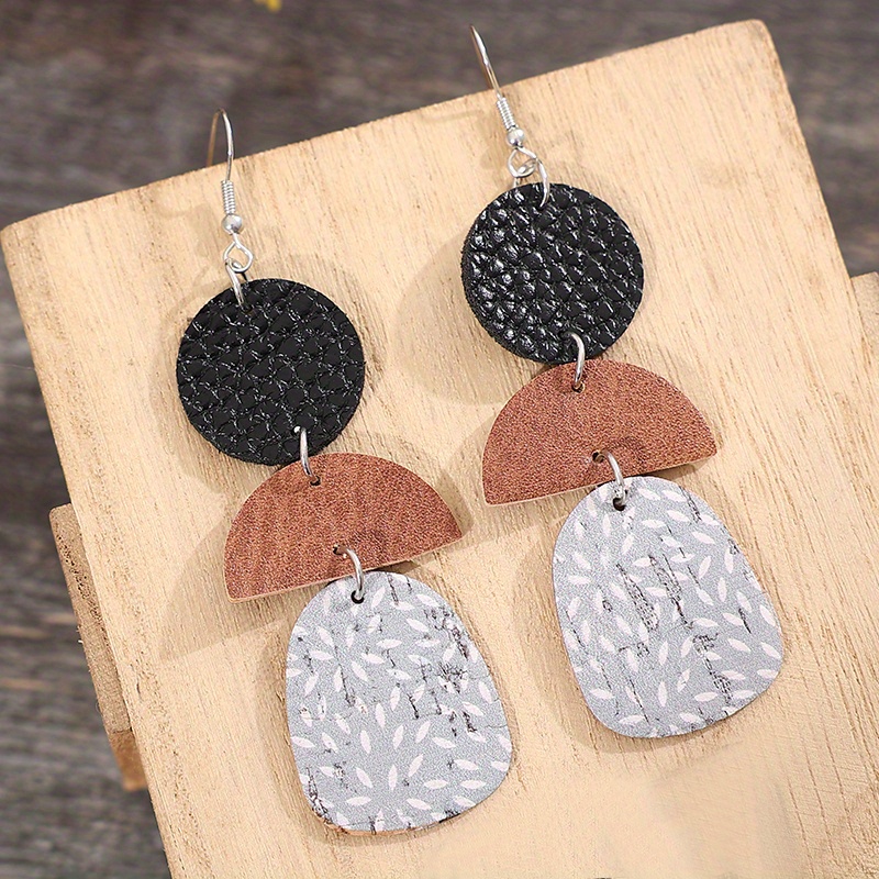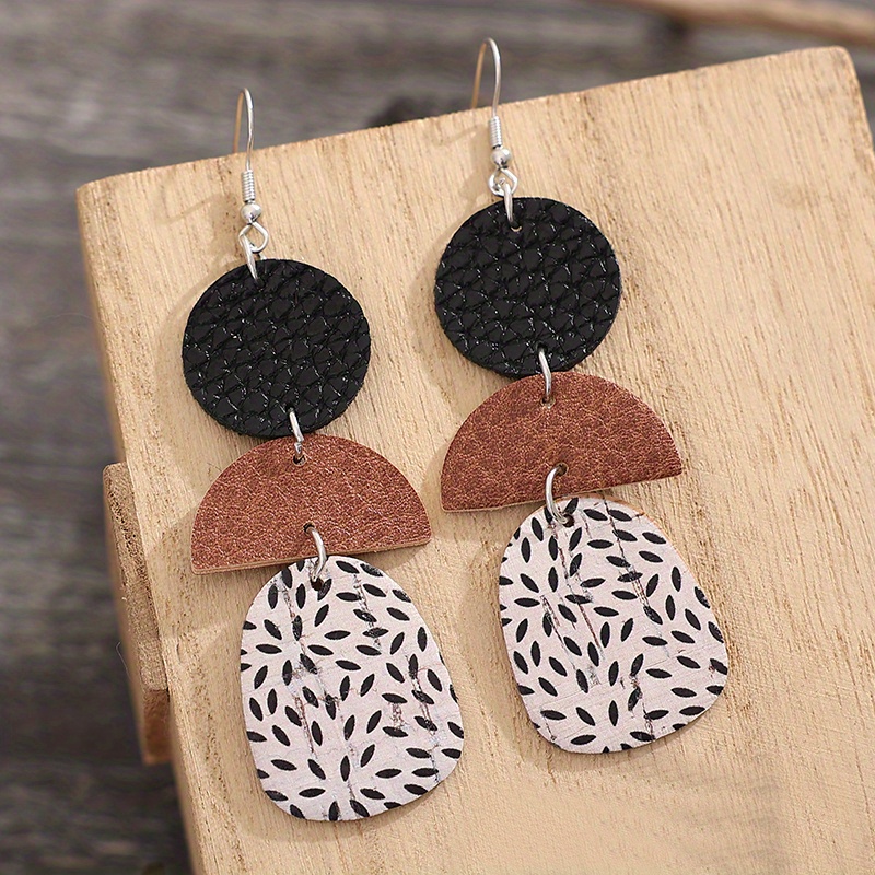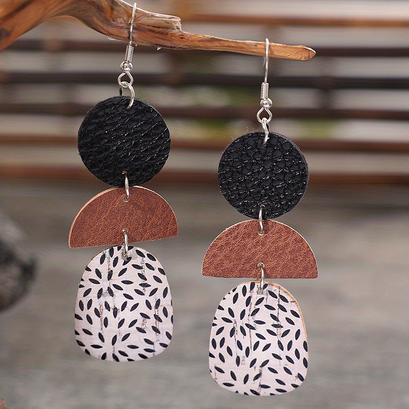 Vintage Round Semicircular Stitching Polka Polka Dot Drop Earrings Vintage Elegant Style PU Leather Jewelry Fashion Women's Gifts Autumn and Winter Earrings