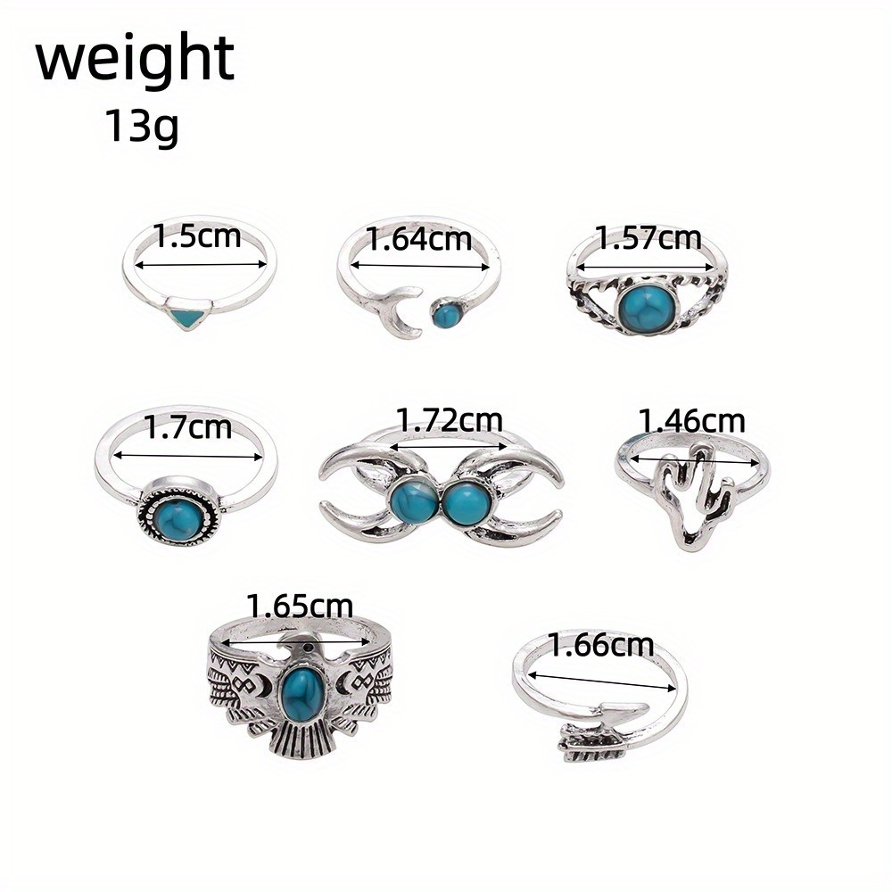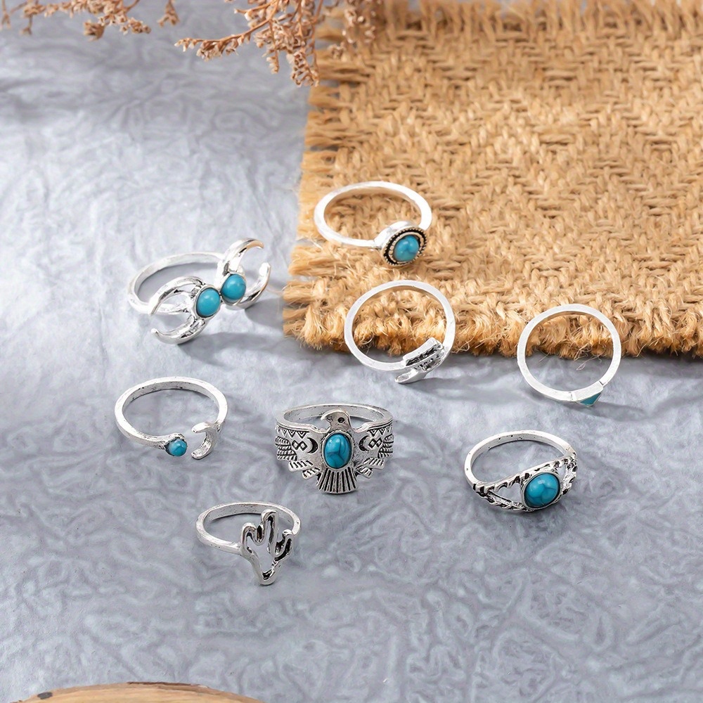 Vintage Turquoise Eagle Cactus Moon Arrow 8 Piece Set Ring Ring