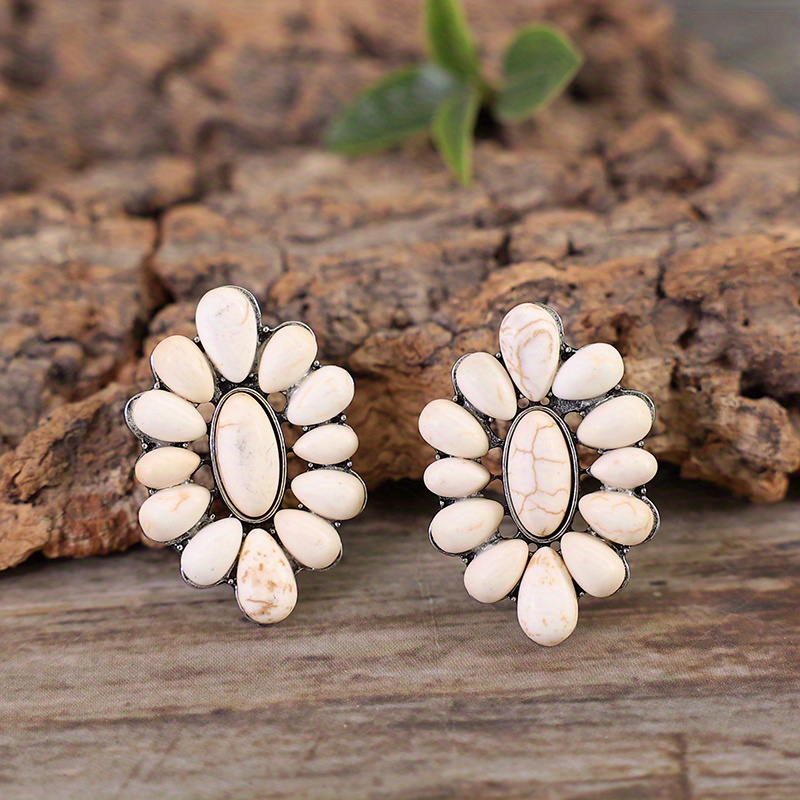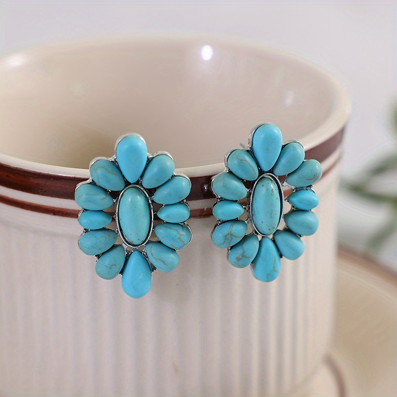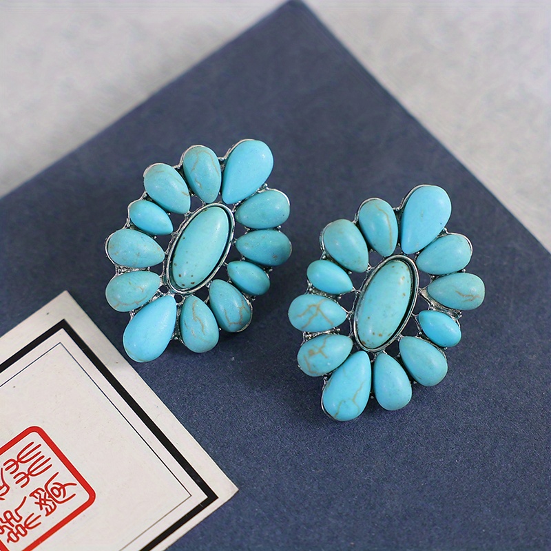 Vintage Western Geometric Turquoise Stud Earrings for Women