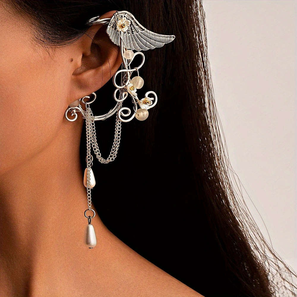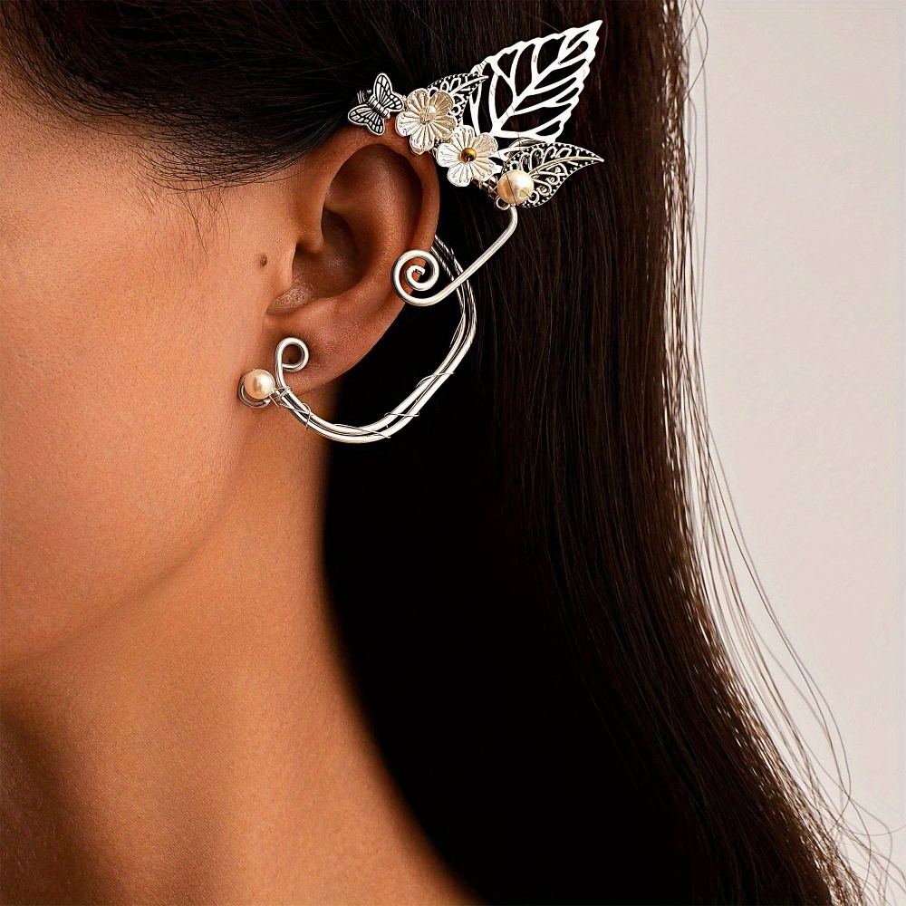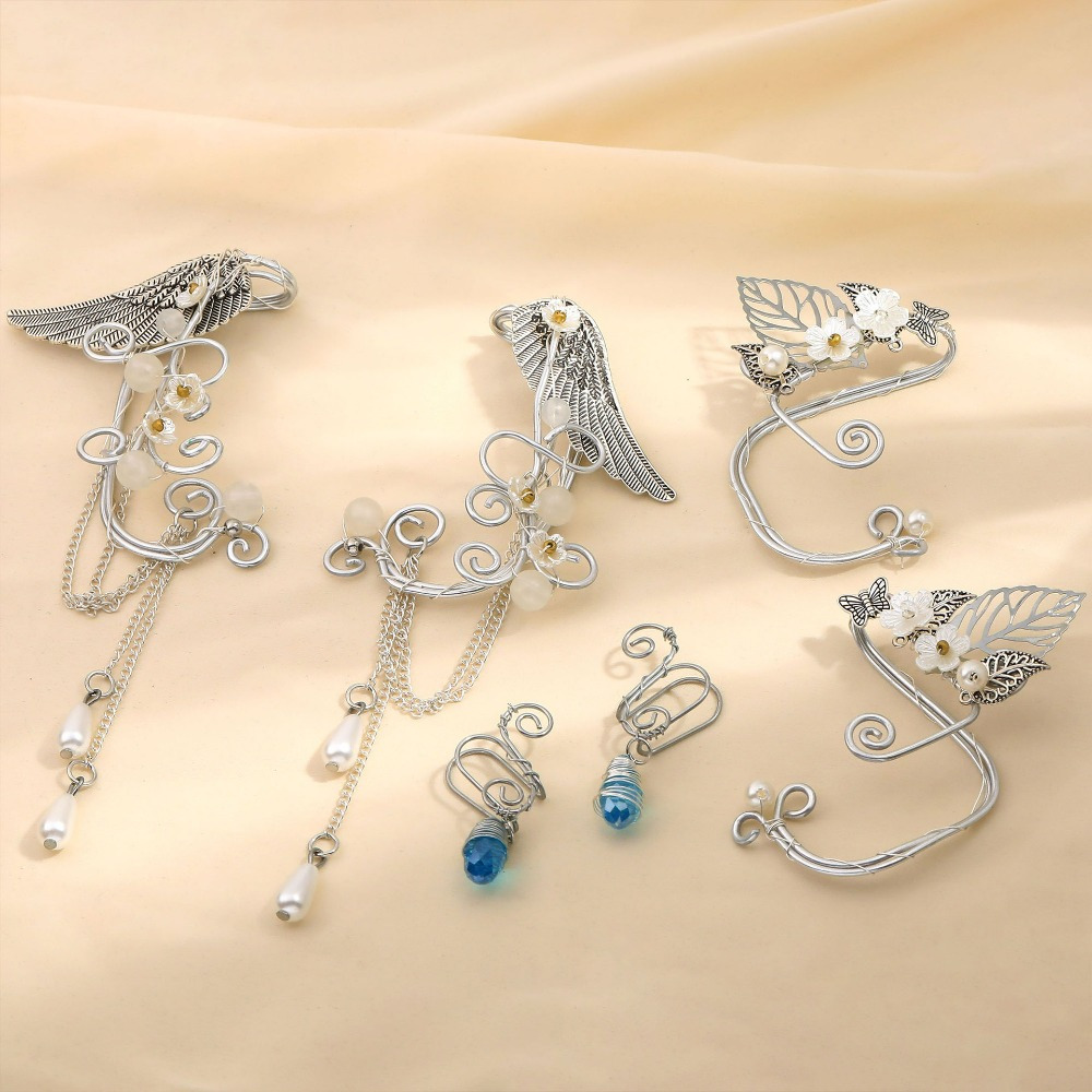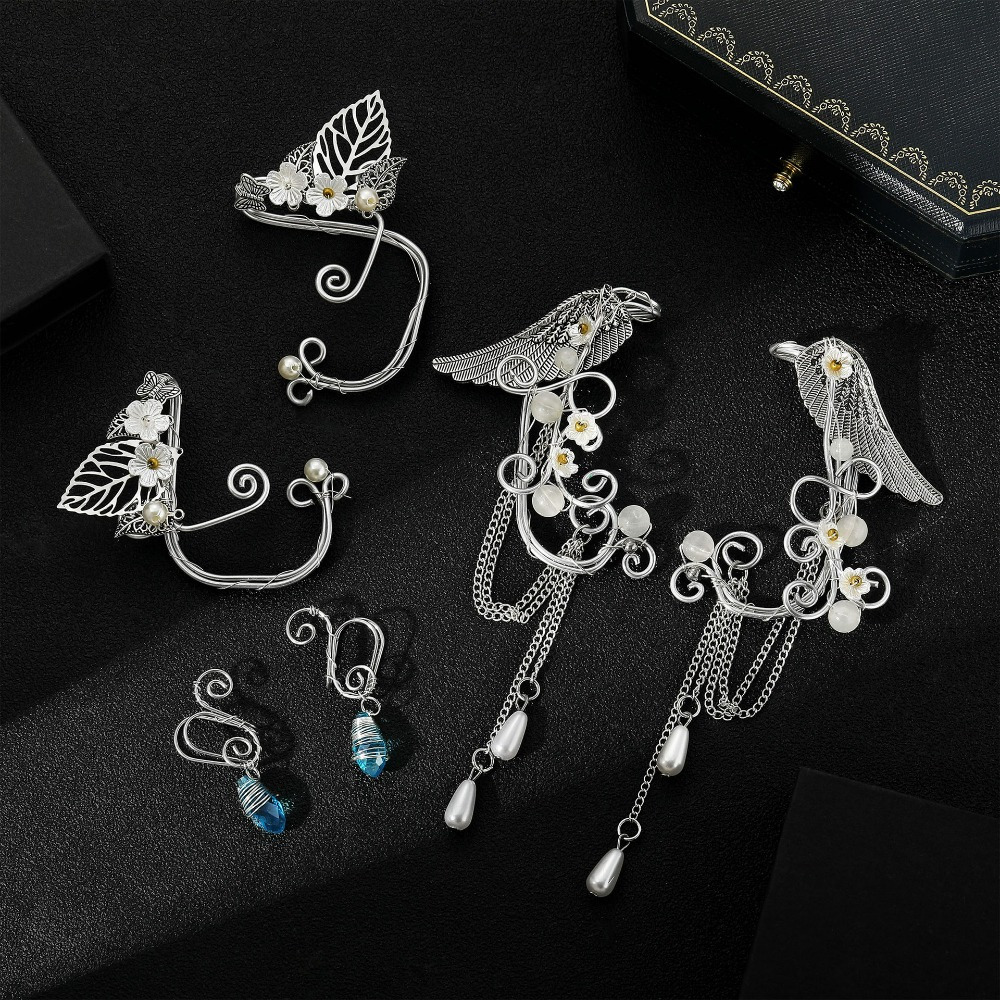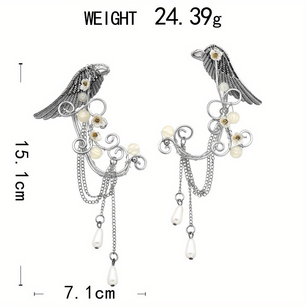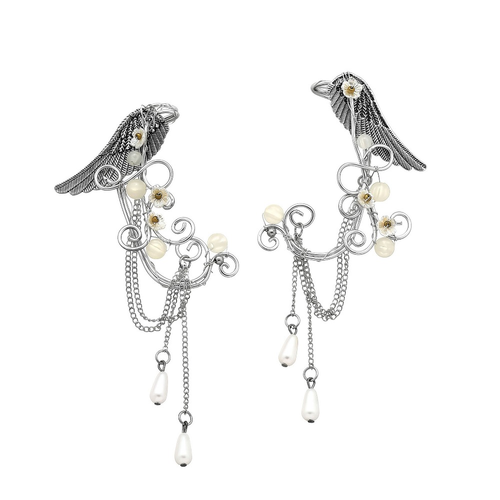 Vintage Wings Flower Leaf Pearl Hand Wound 3 Pair Set Ear Hanging