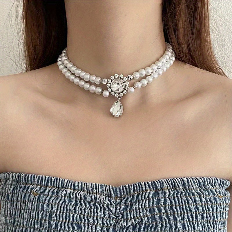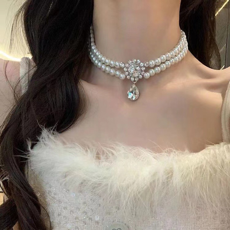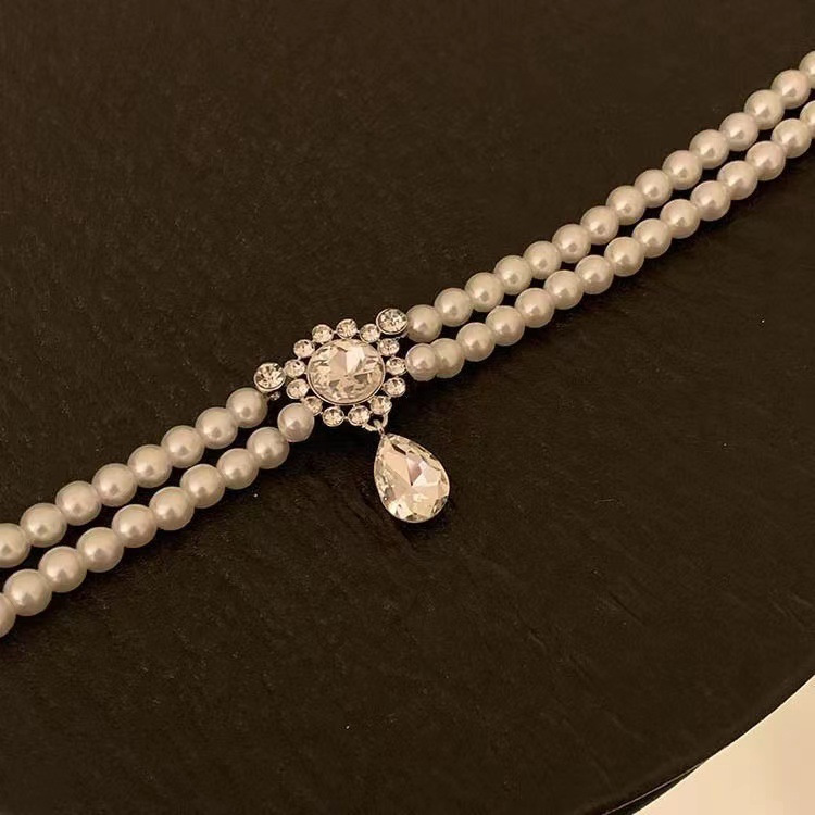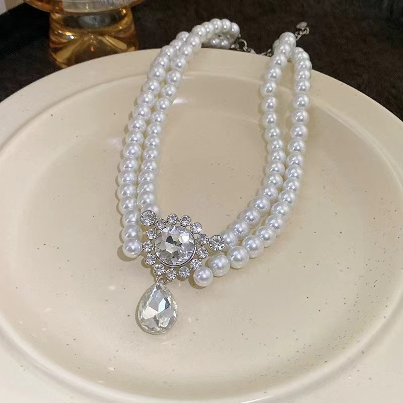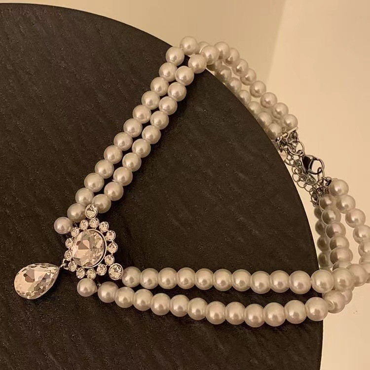 Water Drop Double Pearl Necklace Light Luxury Niche Retro Court Style Collarbone Chain Ins