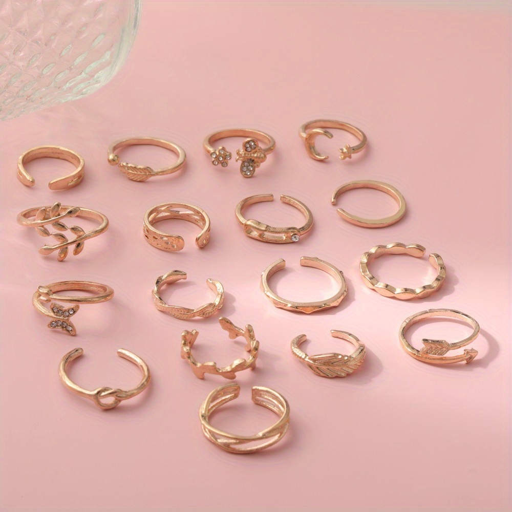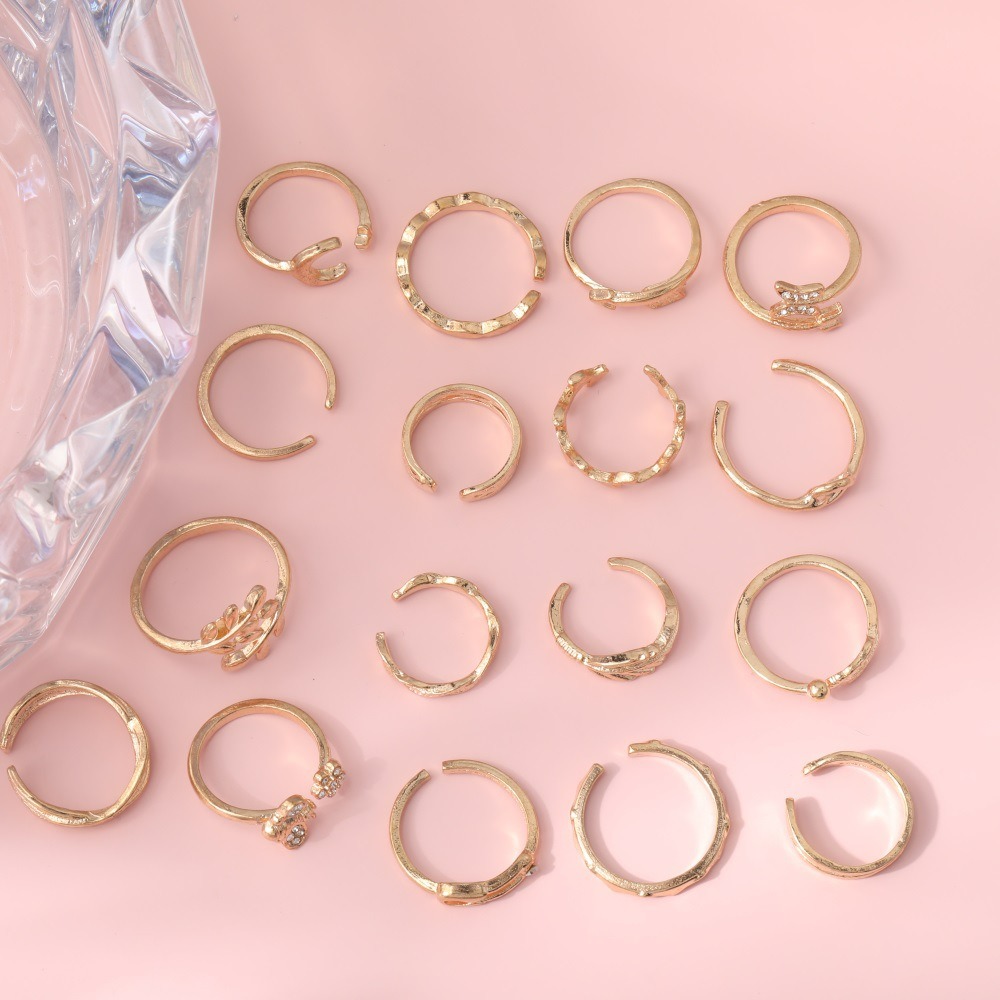 Wind personality bee butterfly diamond 15-piece set leaf ring jewelry combination