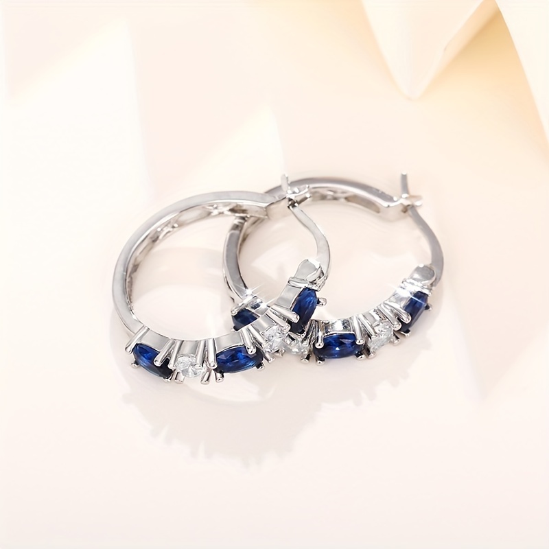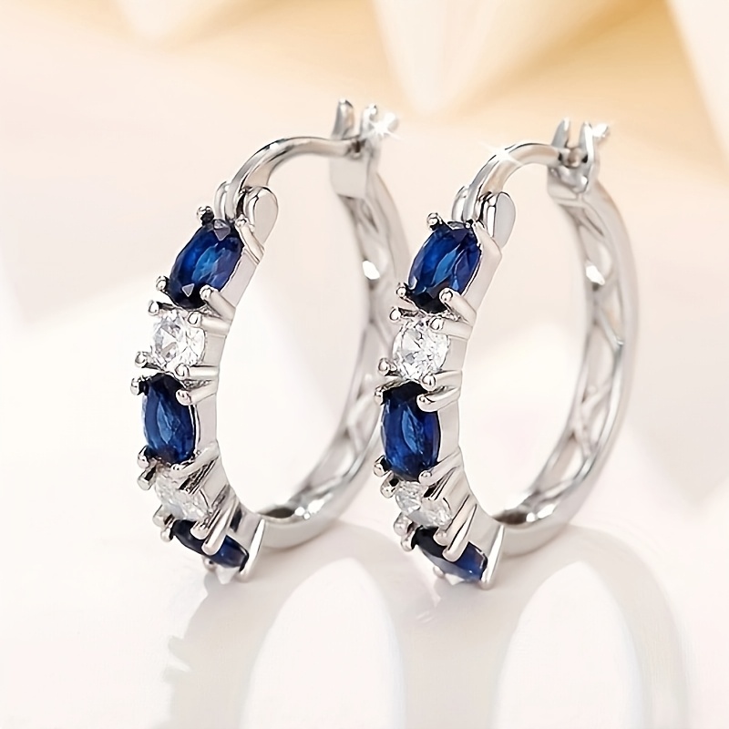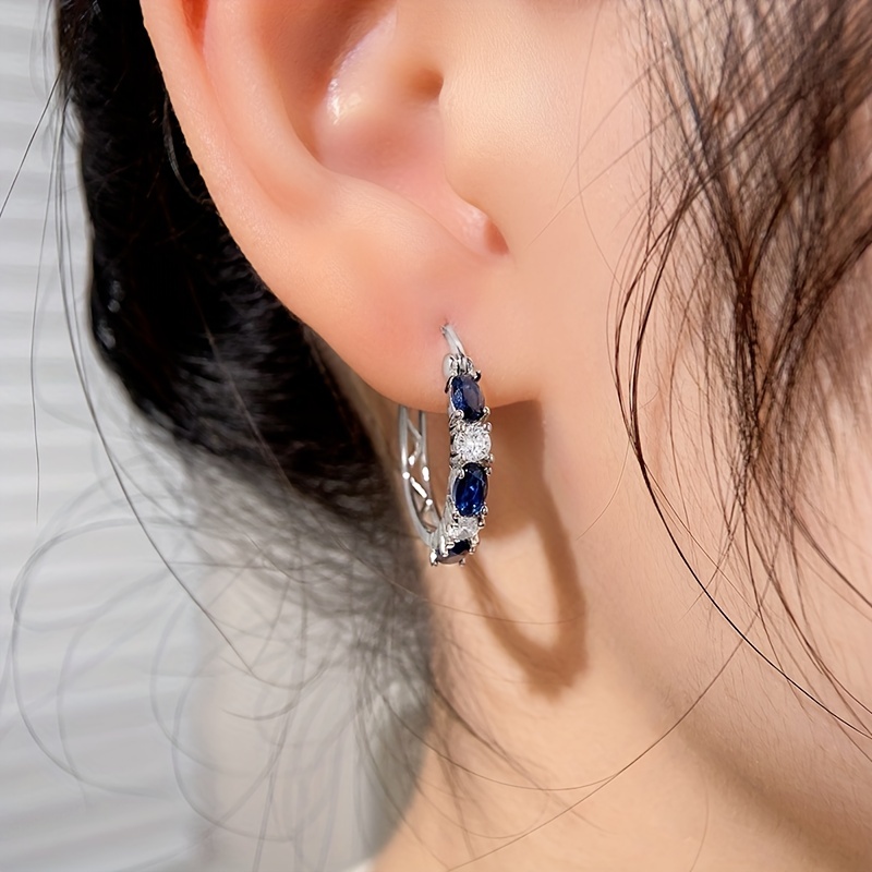 Women's daily wear gift accessories, simple and elegant blue and white gemstone spaced ring studs