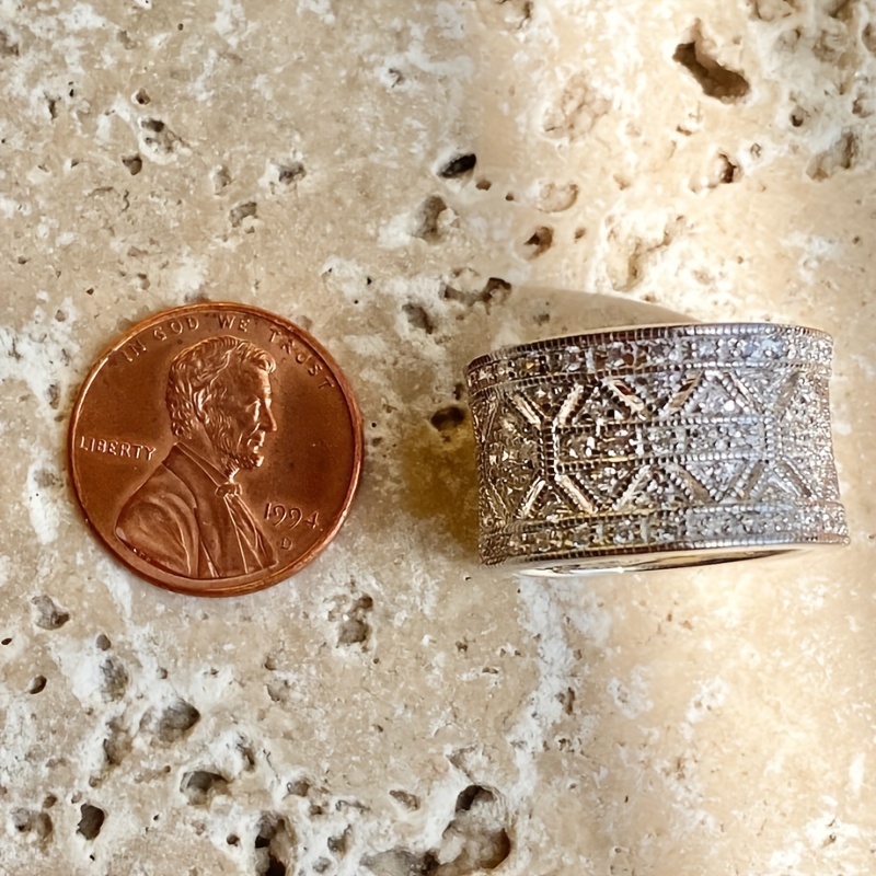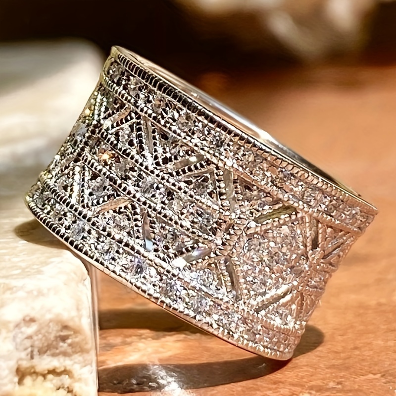 Women's fashion micro-set zircon ring, casual party wide ring, jewelry anniversary gift