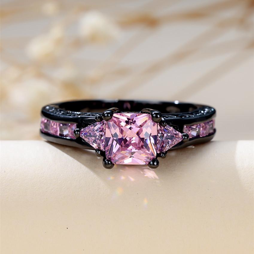 Women's Square Cut Pink Zircon Princess Ring, Engagement Wedding Valentine's Day Jewelry Gift