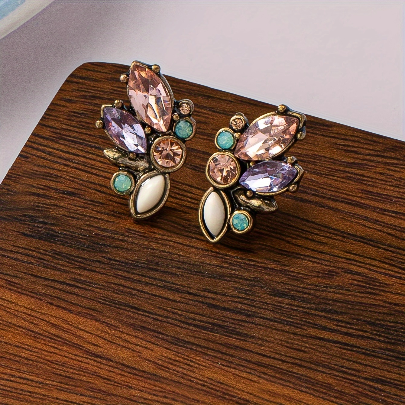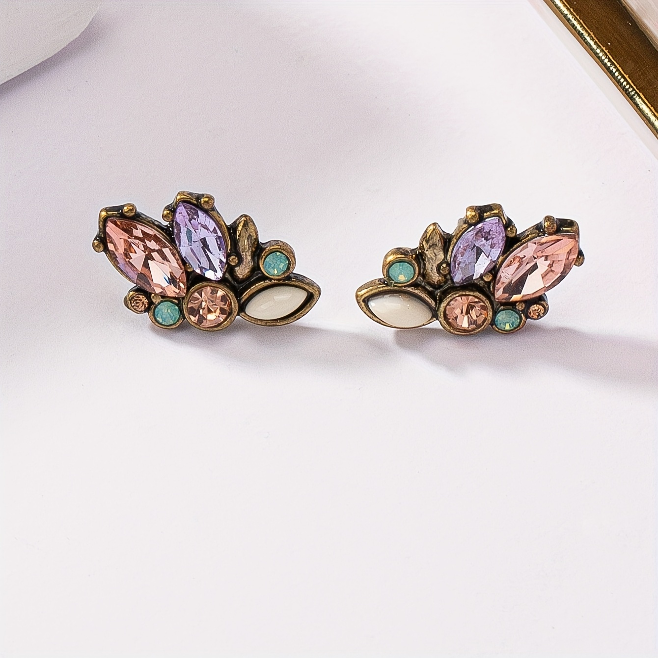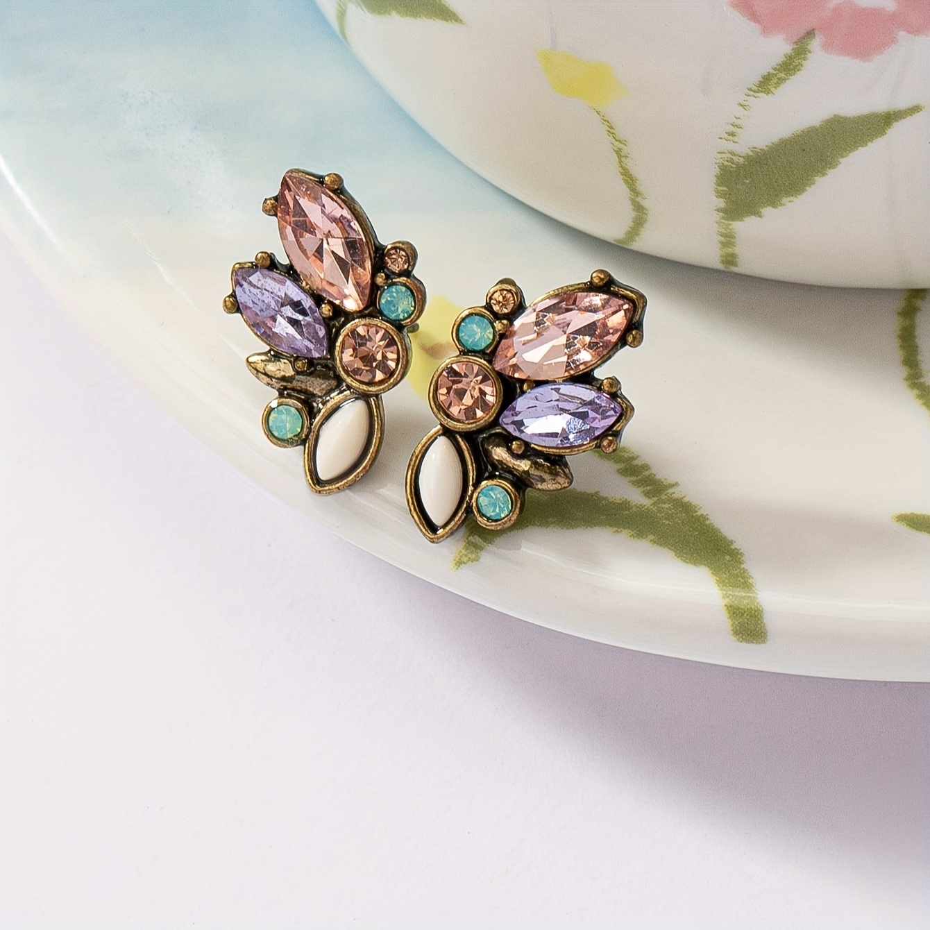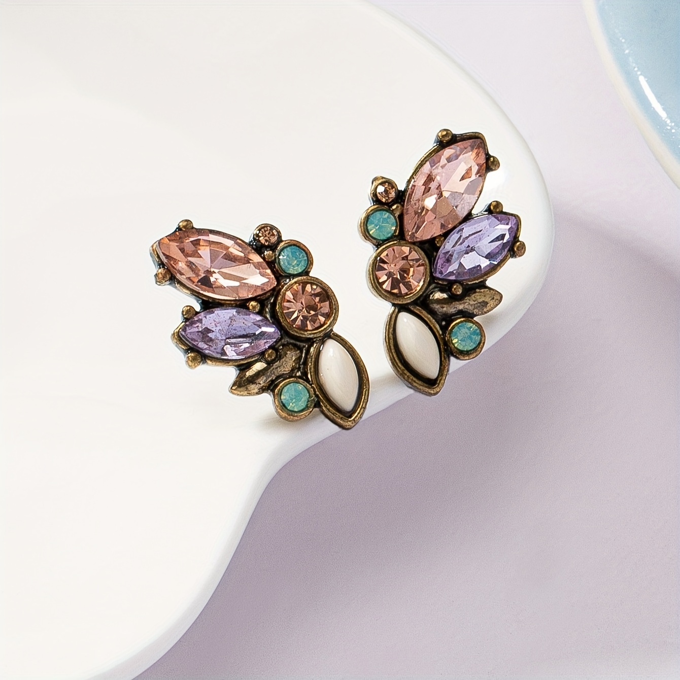 Women's symmetrical butterfly shape colorful stud earrings, retro casual style