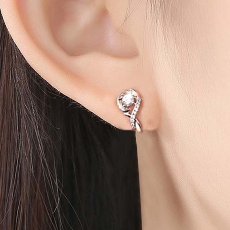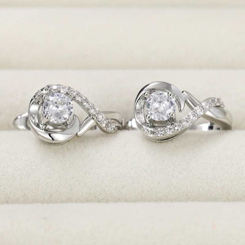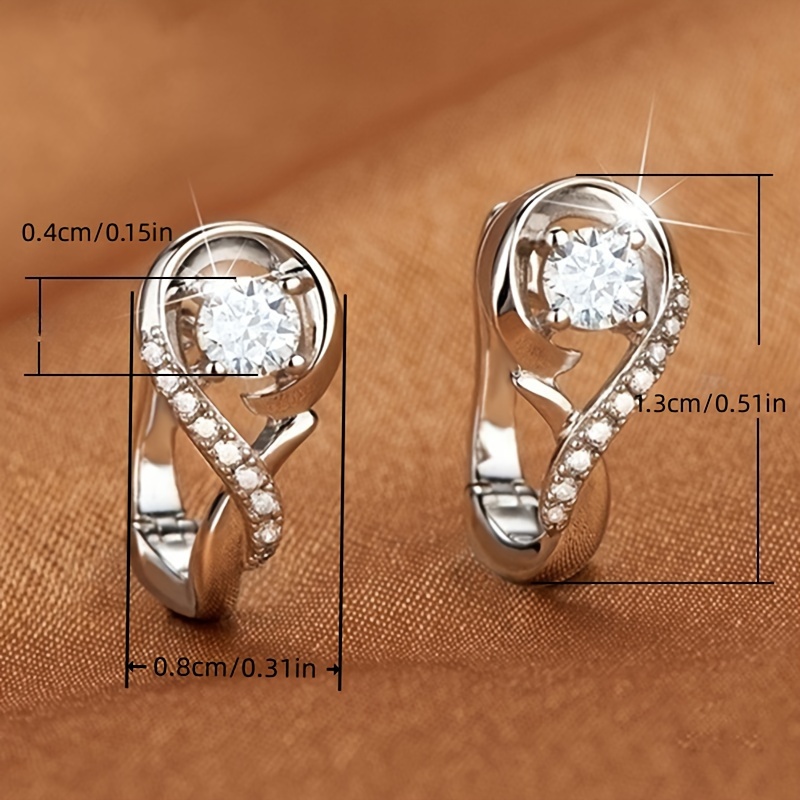 Women's Unique Shape Silver Plated Zircon Earrings, Engagement Wedding Jewelry