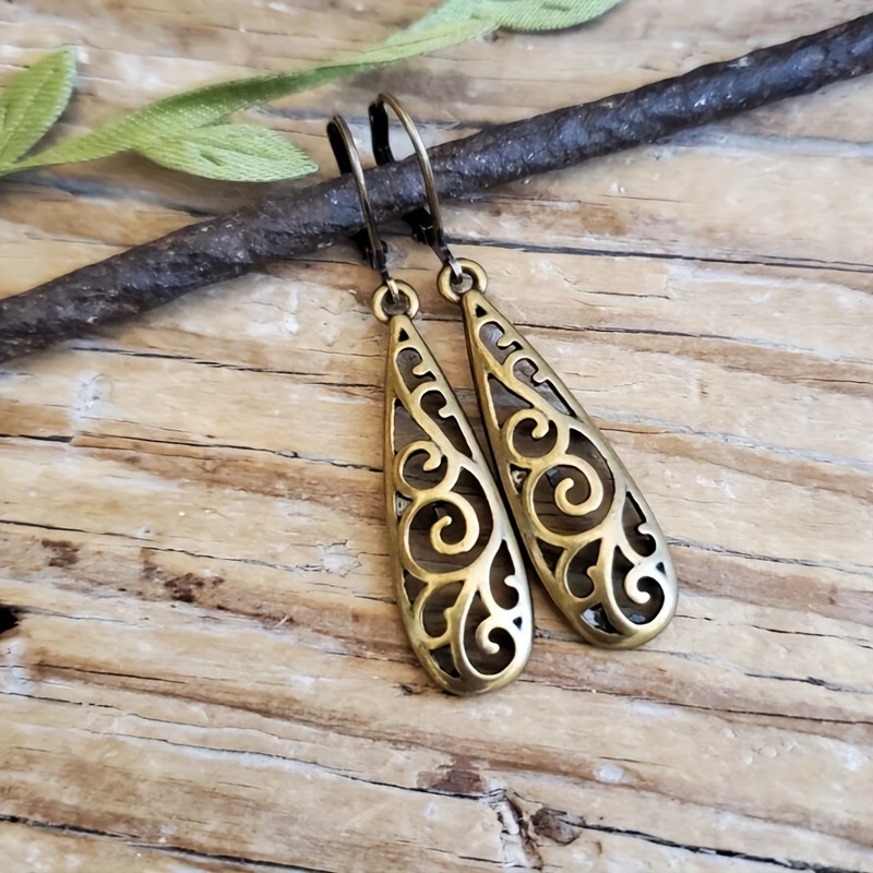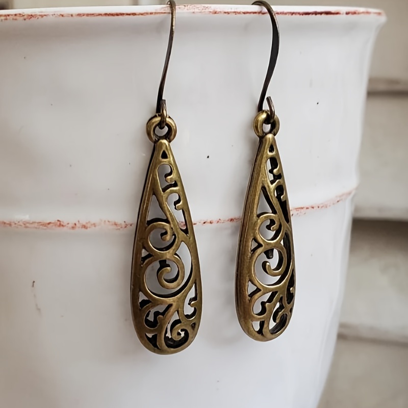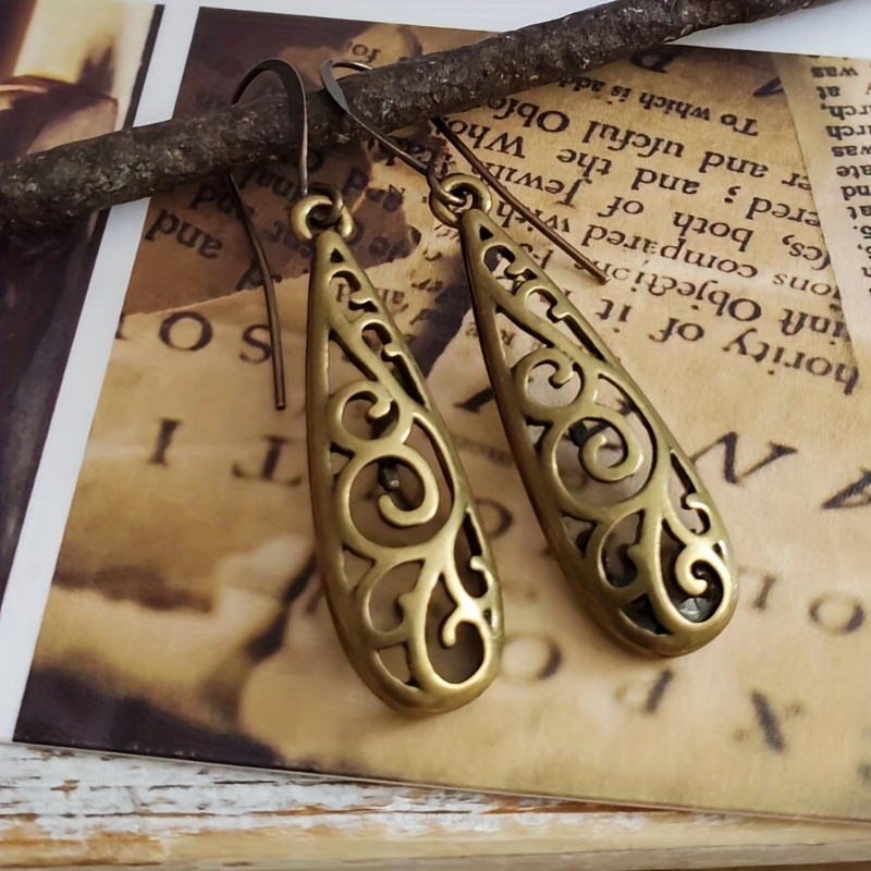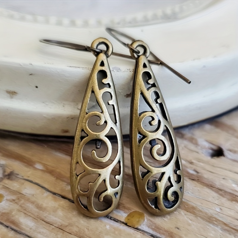 Women's Vintage Style Hollow Alloy Pendant Earrings - Iron Earrings, No Coating, Daily Wear, Suitable for All Seasons