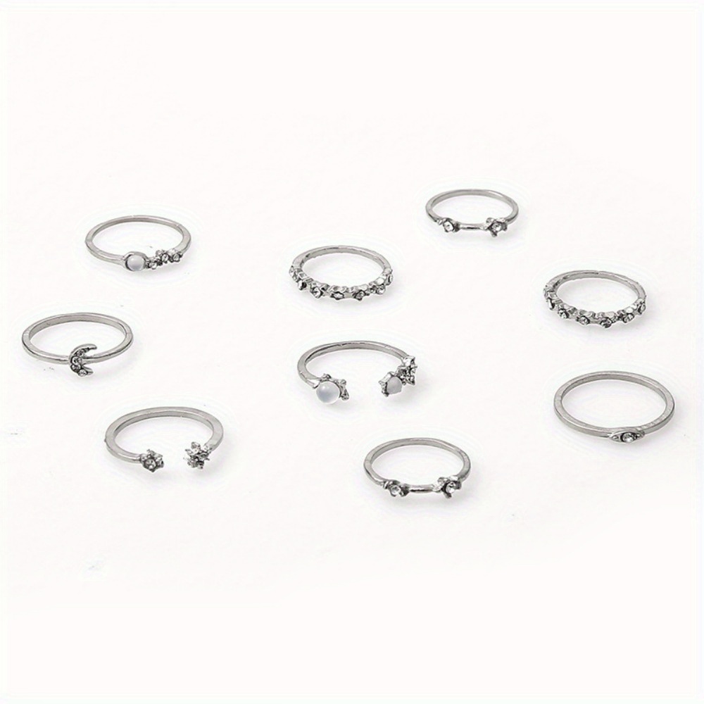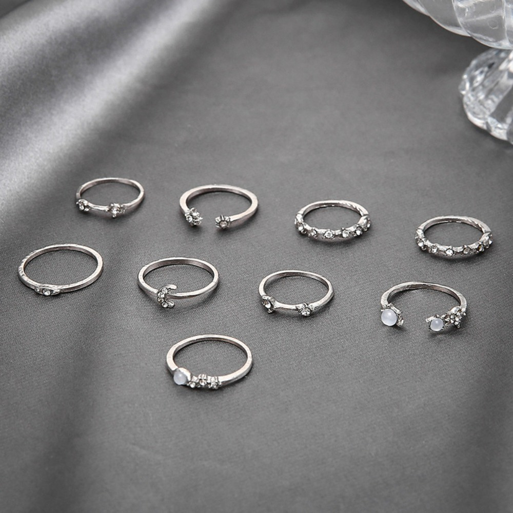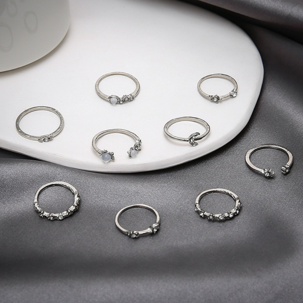 Xingmang Crescent Ring 9-piece Set, Creative Retro Simple Alloy Joint Ring