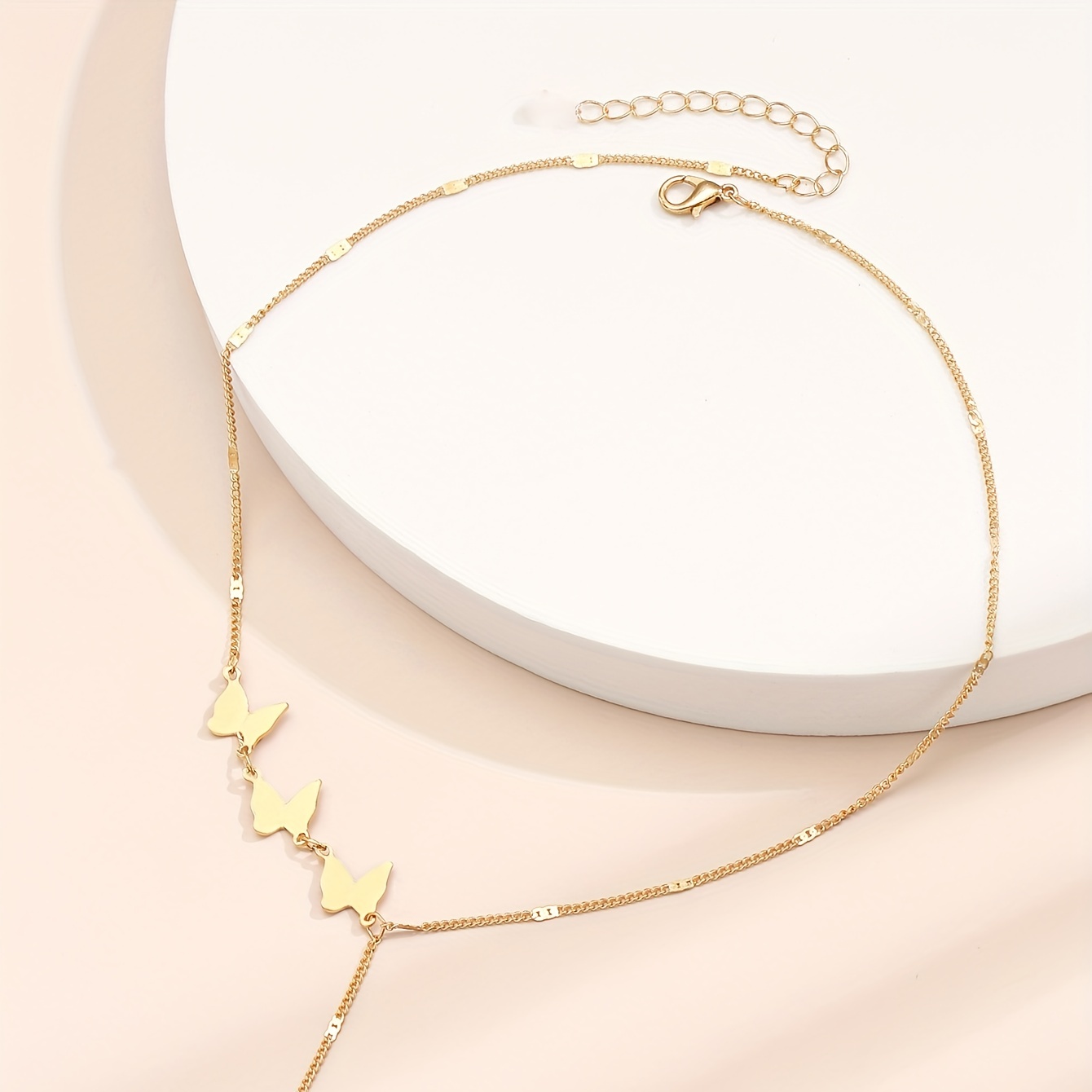 Y-chain necklace butterfly pendant elegant neck jewelry women's jewelry