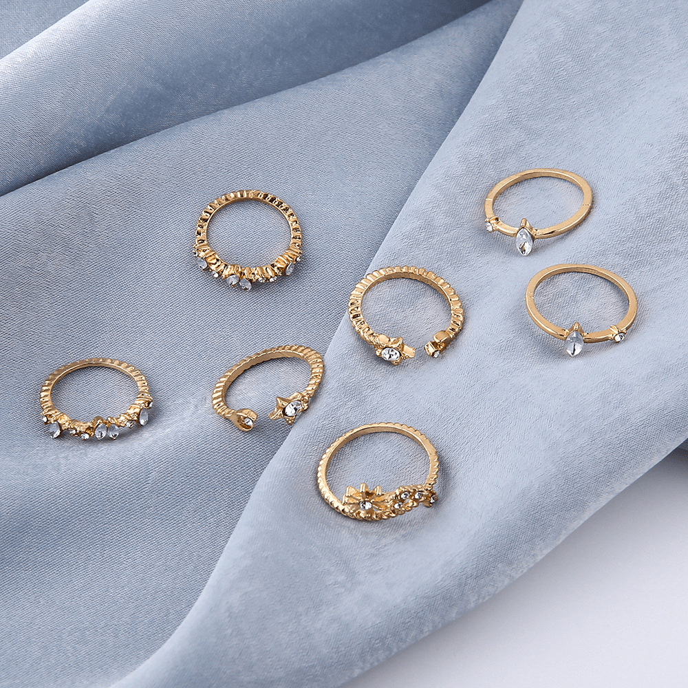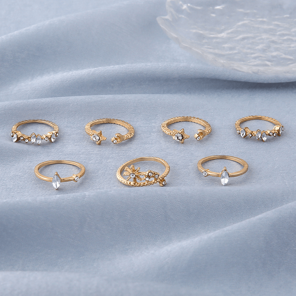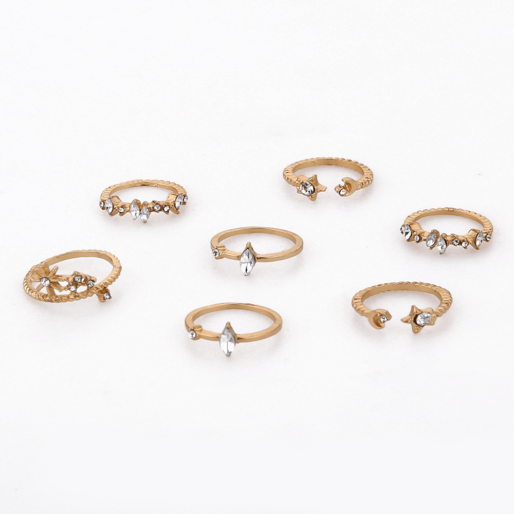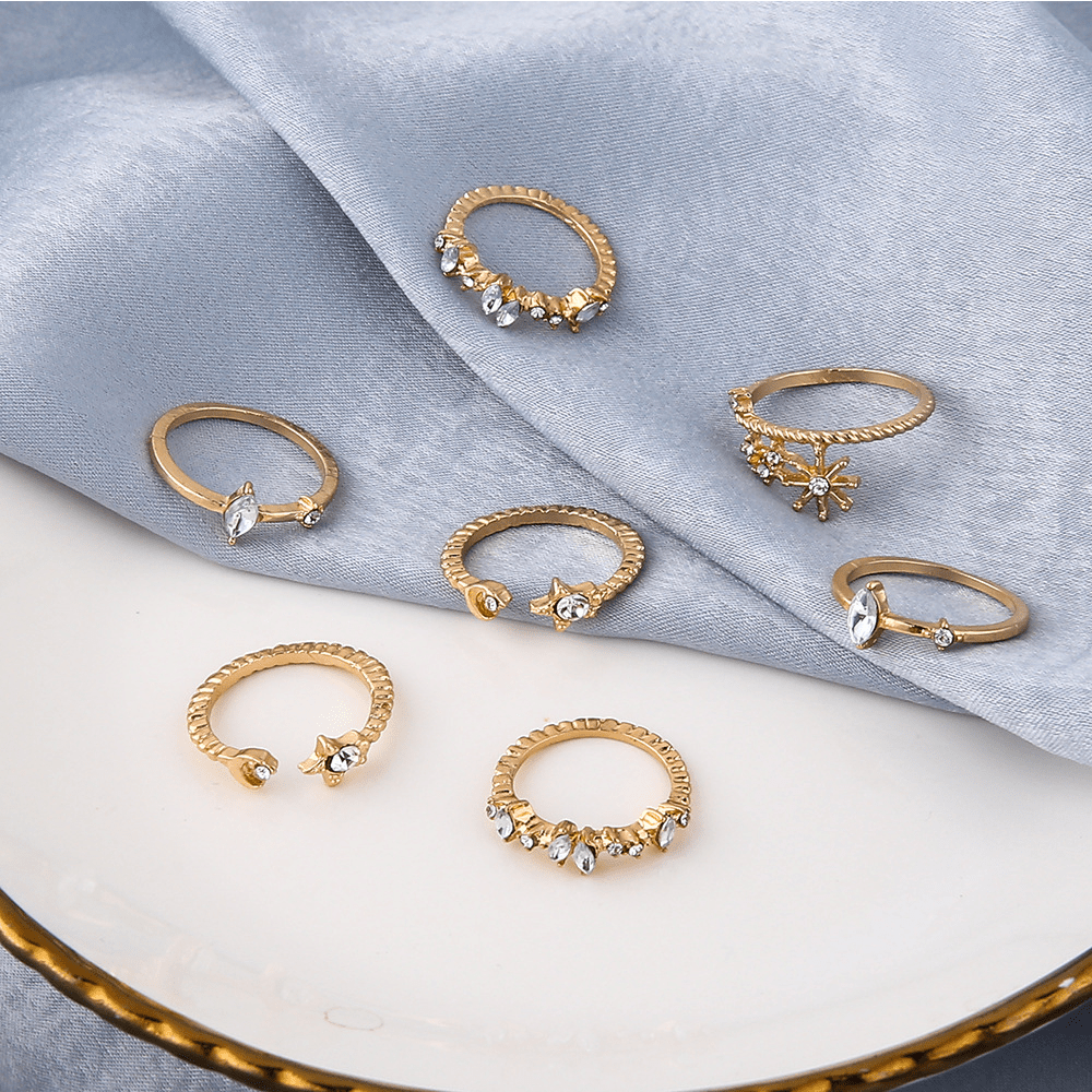 Zircon Star Moon Ring Set 7-piece, Creative Retro Simple Joint Ring